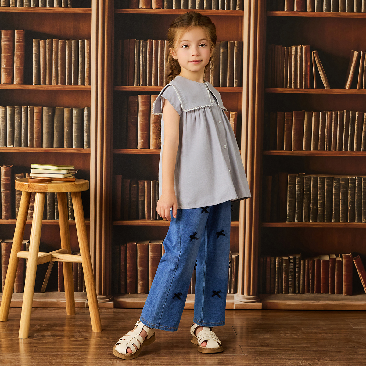 【カラー】少しだけ大人っぽく着こなせるようにカジュアルでありながら高級感のある淡いグレーカラーが特徴のブラウス。襟には白の飾りステッチとレースがついて上品さを兼ね備えたデザインになっています。