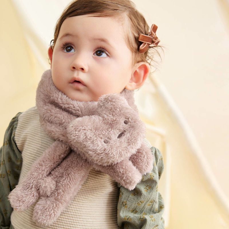 【カラー】グレーピンク、ライトベージュの合わせやすく、使いやすい2色展開です。冬のおでかけにプラスしたい、あったかくまマフラーはキュートなおしゃれアイテムです。