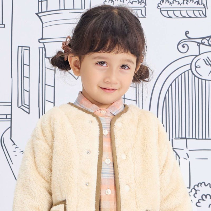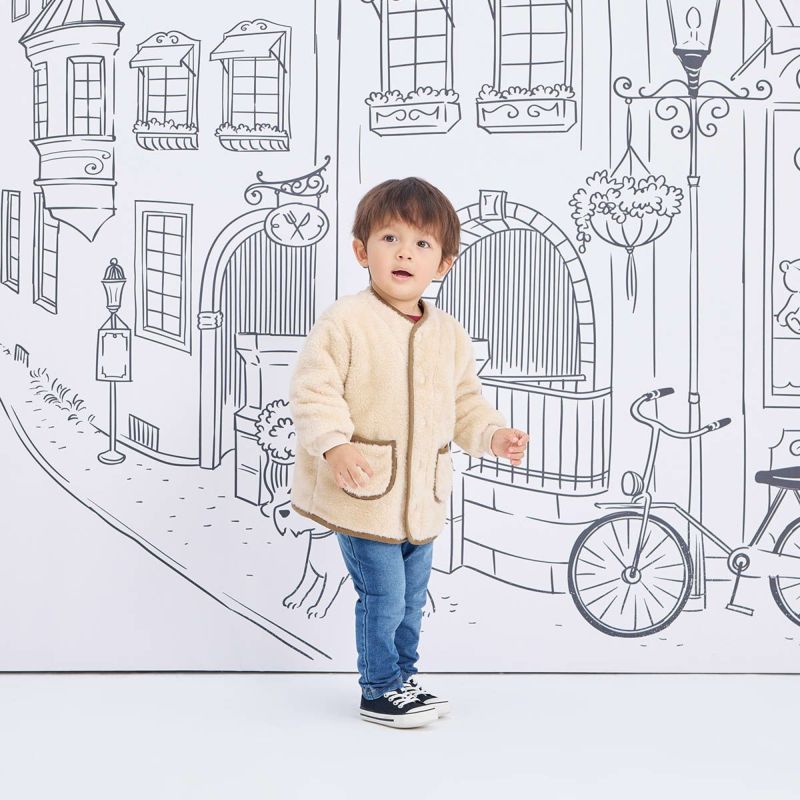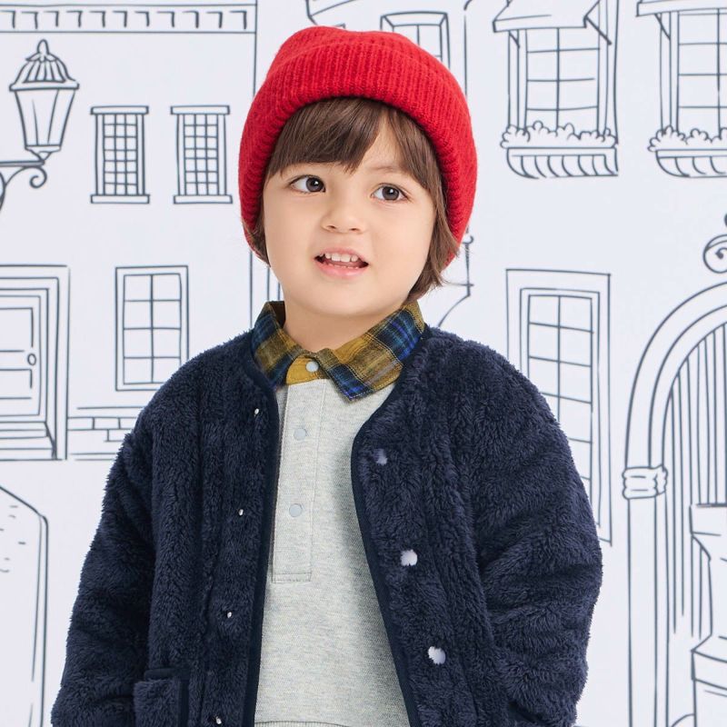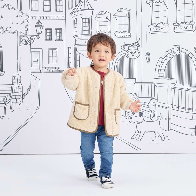 【カラー】冬のあったかコーデに大活躍すること間違いなしのふわふわボアブルゾンはグレーピンク、ネイビー、ライトベージュの合わせやすく、使いやすい3色展開。ボアフリースのシリーズでベビーからキッズまで幅広く展開しているので、リンクコーデを楽しむのもおすすめ。