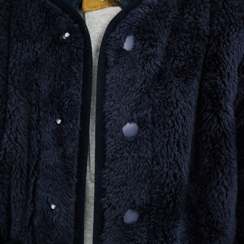 【仕様】脱ぎ着しやすいようにドット釦開きの仕様で、袖がまくりやすいように袖口リブを採用。端のパイピング始末にはコーデュロイ生地を使い上品にまとめあげています。着丈はお尻位の設計で寒さをカバーします。
