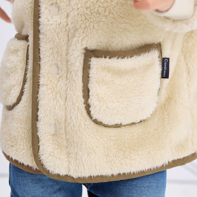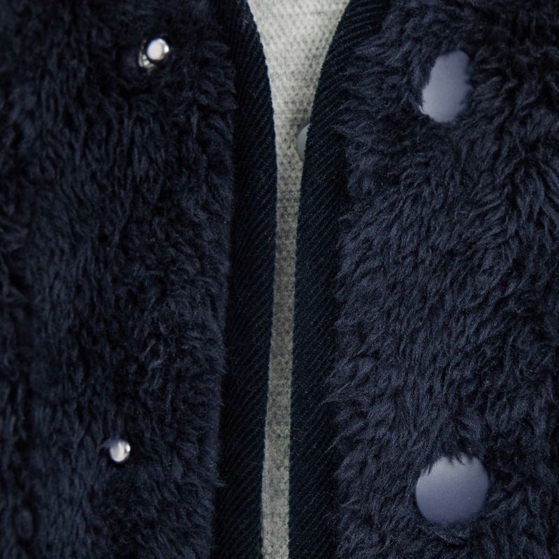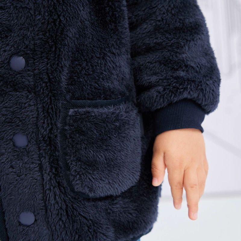 本体/ポリエステル100%(ボアフリース) 、見返し・パイピング/綿100%(フライス、ミジンコール)、袖口リブ/綿95%ポリウレタン5%(スパンテレコ)