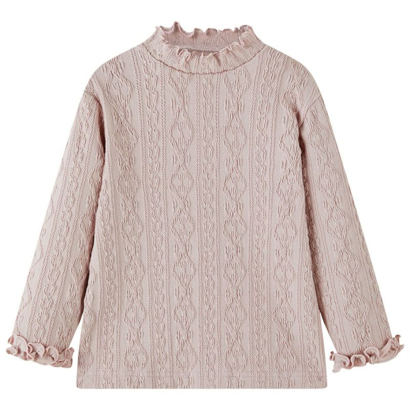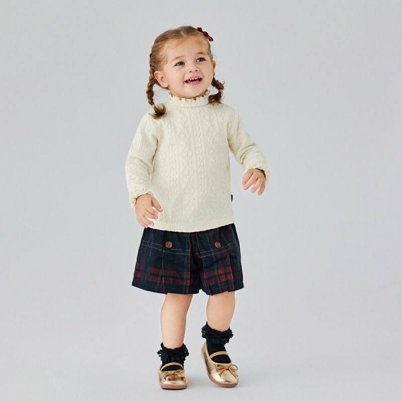 【素材】凹凸感のあるケーブル柄が特徴の生地はストレッチも効いているので運動量の多い子供にも適した素材です。