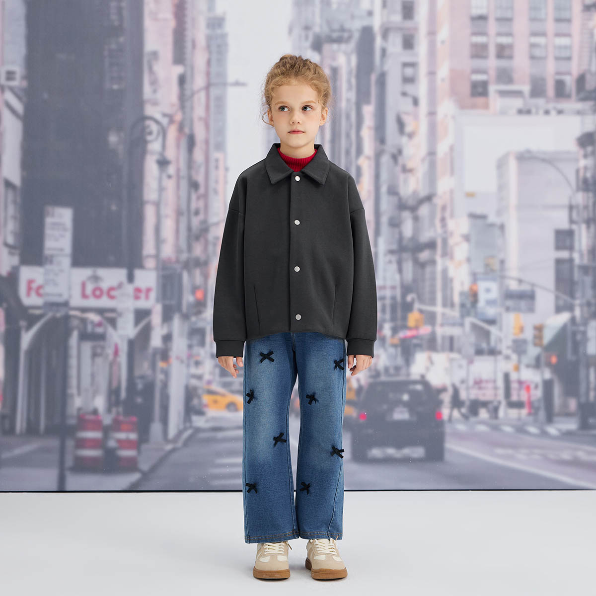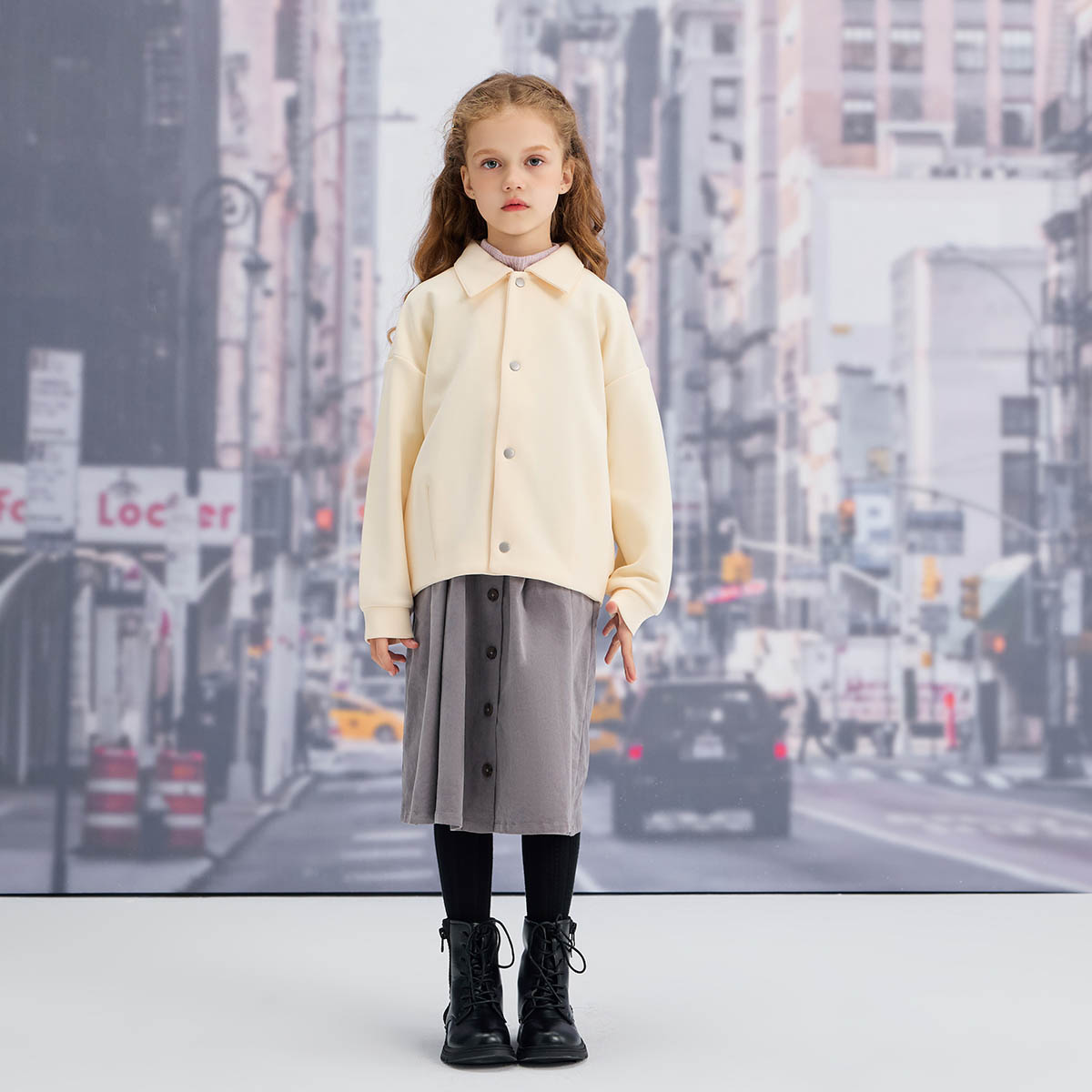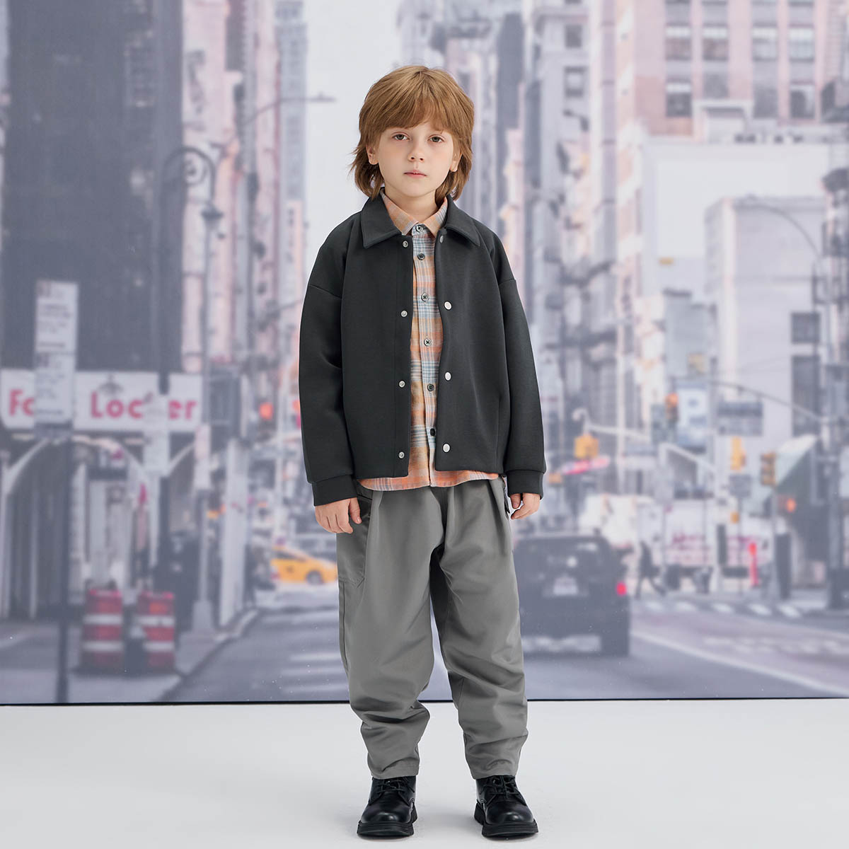 【仕様】秋口の軽く羽織るアイテムとしておススメできる前開きの襟付きブルゾン、両脇には便利なポケット付きで、前開き部分はドット釦なので脱ぎ着もカンタン。様々なシーンで活躍する一着は110~140サイズ展開です。