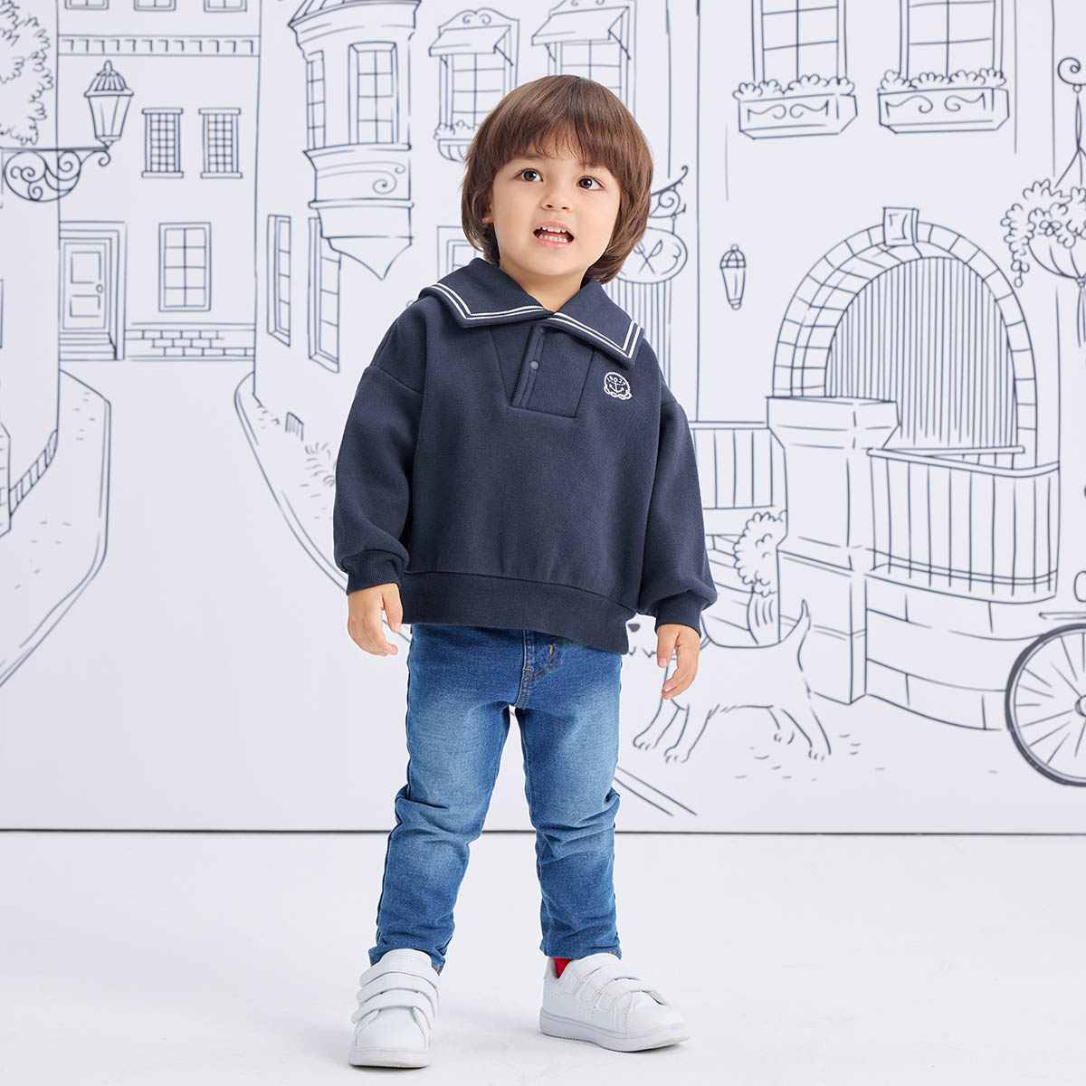 【仕様】大きめのセーラー襟に左胸のアンカー刺繍がマリンテイストあふれるオーバーサイズシルエットのトレーナーです。