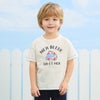 【カラー】ベーシックに使いやすいホワイトとネイビーの2色展開。前身にはくじらモチーフのプリントを施し、袖口・裾のくじらモチーフのカラーに合わせた配色飾りステッチが夏らしくマリンテイストあふれる一枚です。