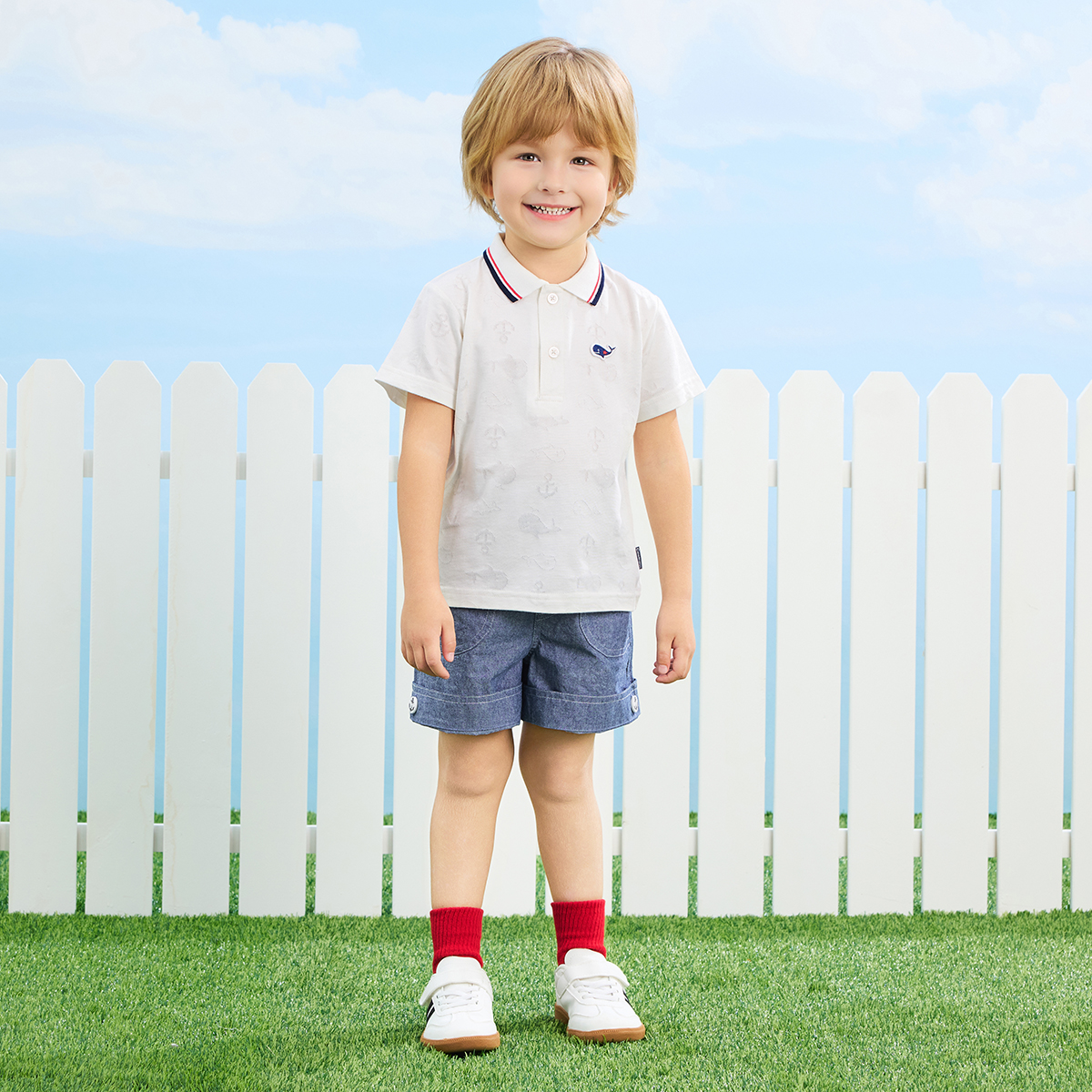 【カラー】マリン調のテイストでは定番のショートパンツ。トップスに合わせやすく男女ともにおススメです。イカリ柄のボタンがポイントになっています。