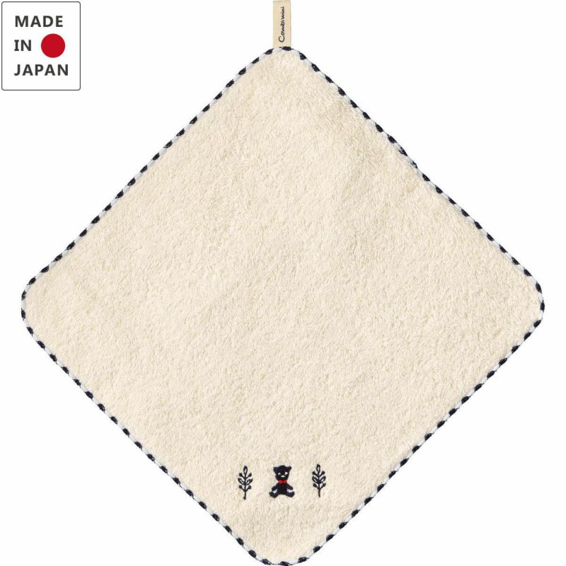 今治製のオーガニックパイルを使用したハンカチ。珍しい縁飾りと刺しゅうを施した丁寧な仕上がりです。今治タオルならではの素朴でやわらかい風合いはデリケートな赤ちゃんの肌にも安心。吸水性にも優れています。