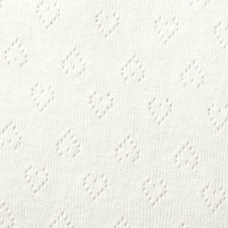 【素材】伸縮性のある肌ざわりの良い綿100%アイレットフライスを使用。シンプルな無地見えなのにハート柄が入った特徴のある生地です。