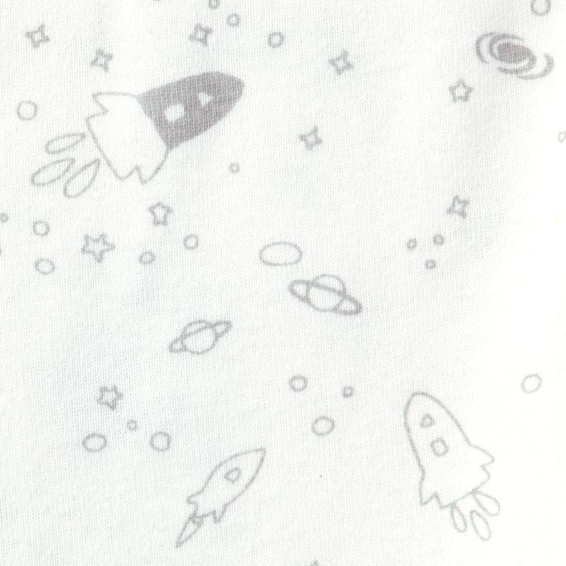 【柄】ロボットやロケットがプリントされたファンタジックな宇宙柄の長袖Tシャツ。日常的に使うインナーとして便利です。