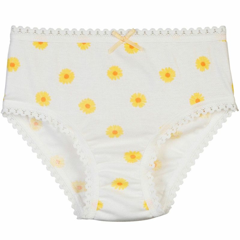 元気で可愛らしいマーガレット柄にフロントのリボンがワンポイントのショーツ。ふちのレースがお姉さん気分を上げてくれます。吸水速乾性に優れたフライス素材を使用しているので、春夏はもちろん、厚着でムレやすい秋冬にも◎。洗濯しても乾きが早いので、洗い替え用に何枚か用意しておくと安心です。