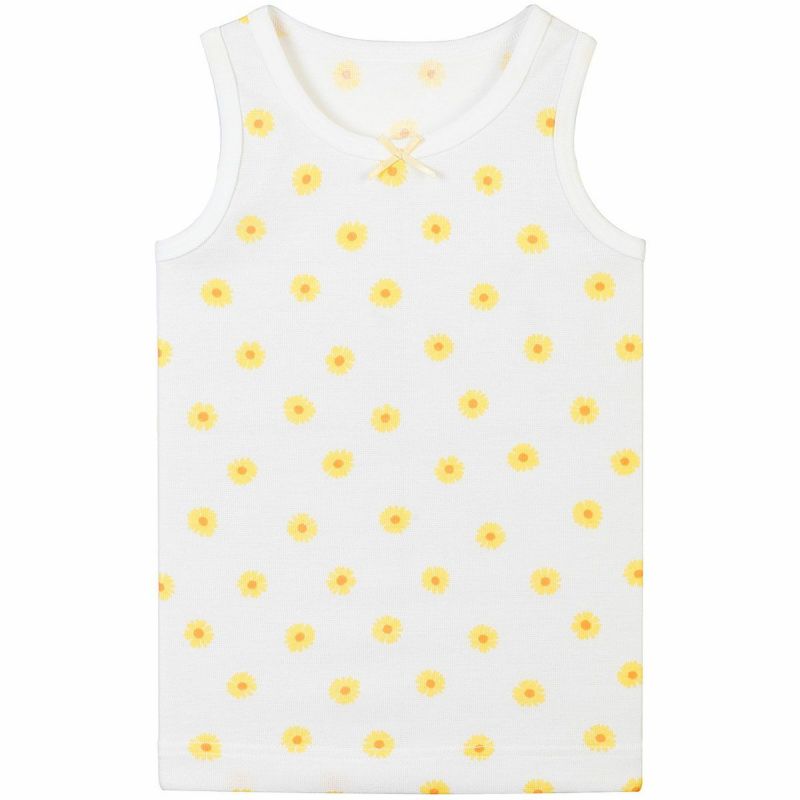 元気で可愛らしいマーガレット柄にリボンのワンポイントがキュートなタンクトップ。吸収速乾性に優れたフライス素材で乾きが早いので、時間がたってからの汗冷え防止にも◎。春夏はもちろん、厚着でムレやすい秋冬のインナーとしてもおすすめです。