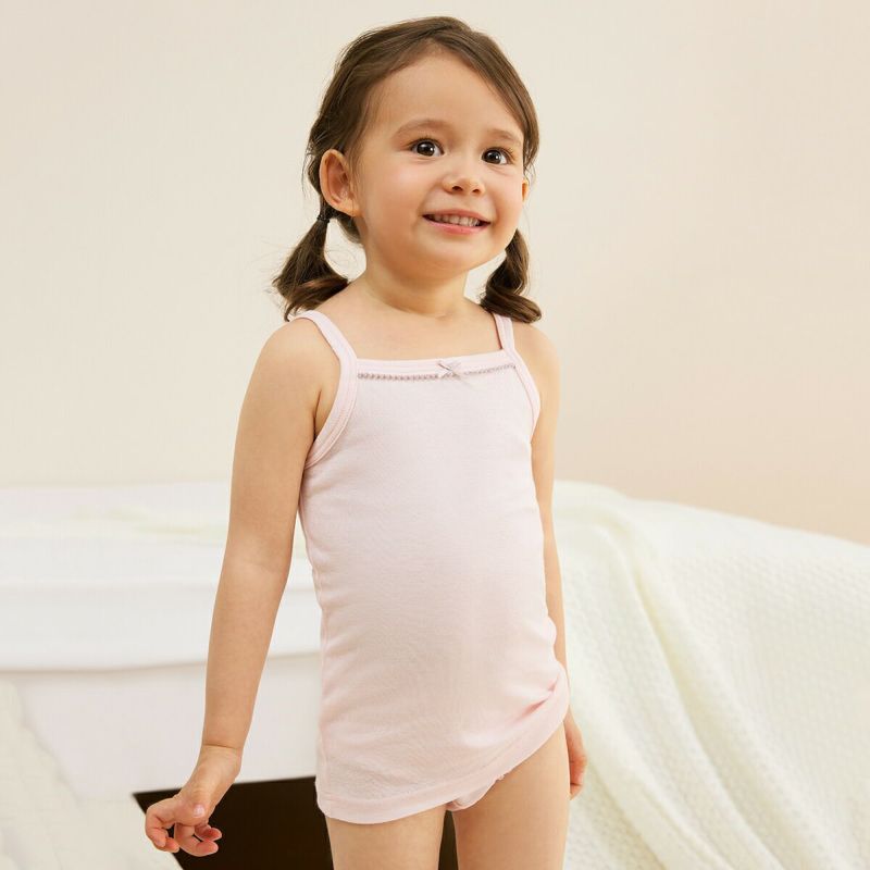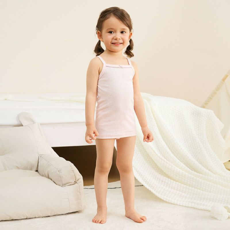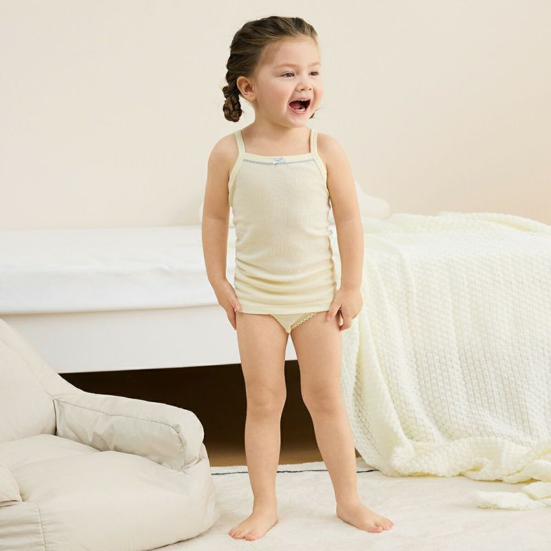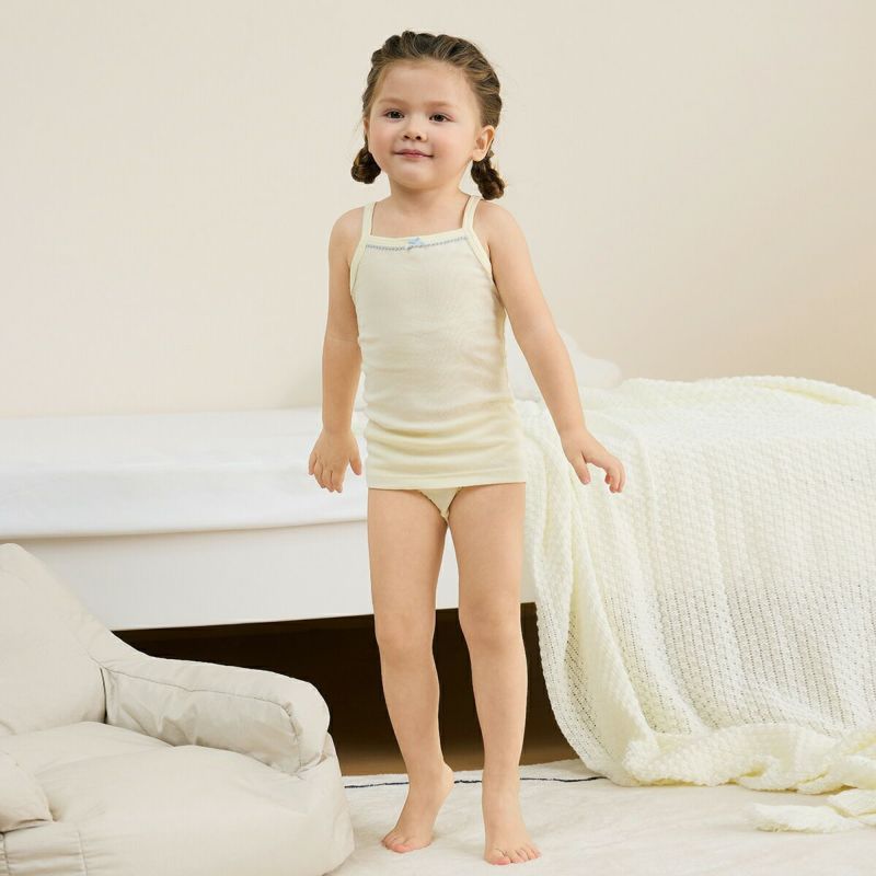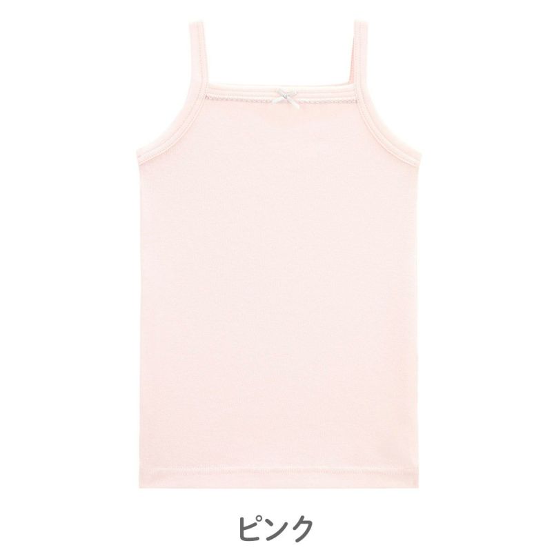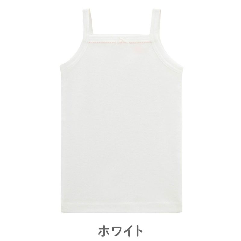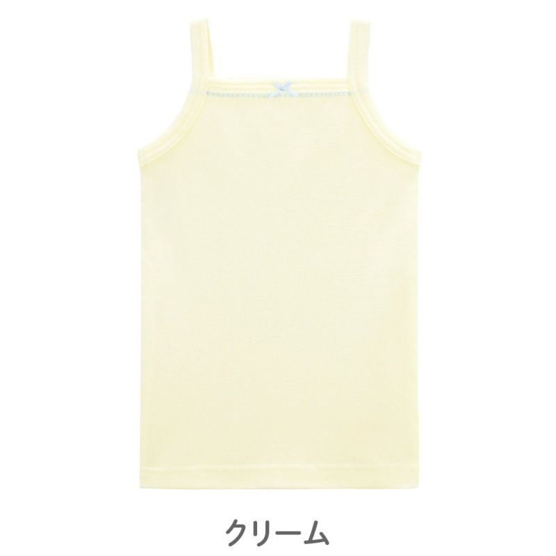 【仕様】胸元に配色のピコとリボンをあしらい、ガーリーに仕上げたキャミソールタイプの肌着です。