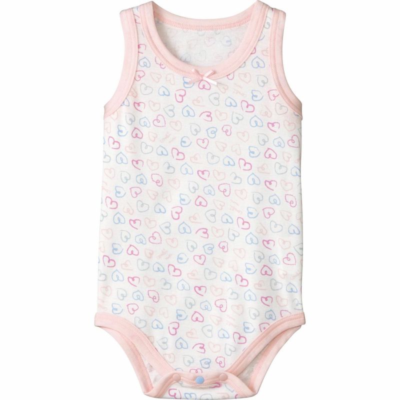 エアースルー構造で熱がこもりにくくさらっと着られるボディタンク。ガーリーな手描き風ハート柄。ライトピンクのパイピングとリボンがアクセントになっています。(ベビーからキッズまで着られます)