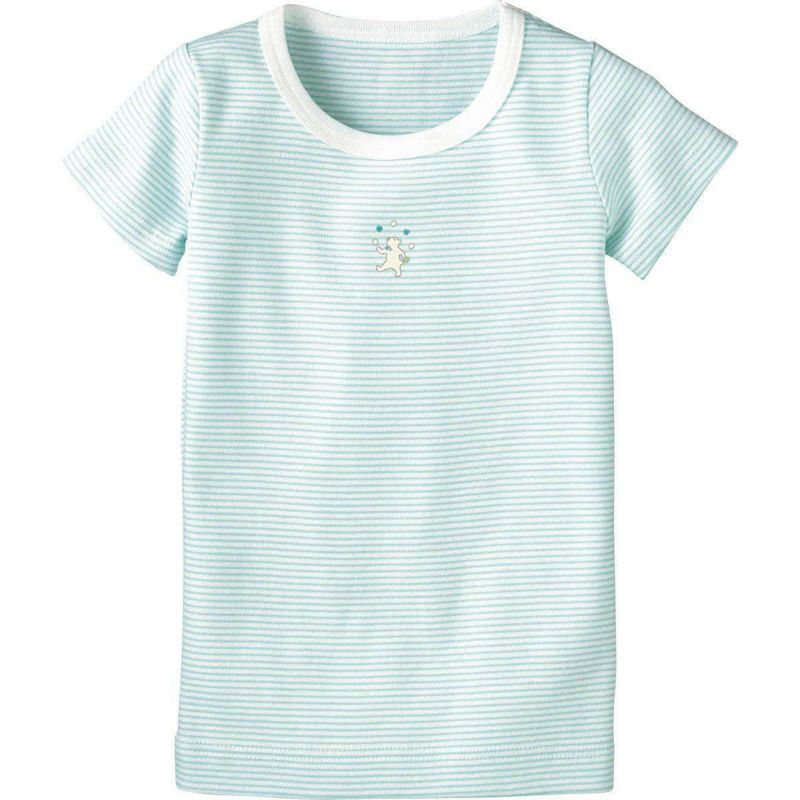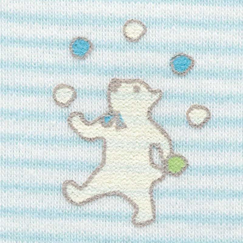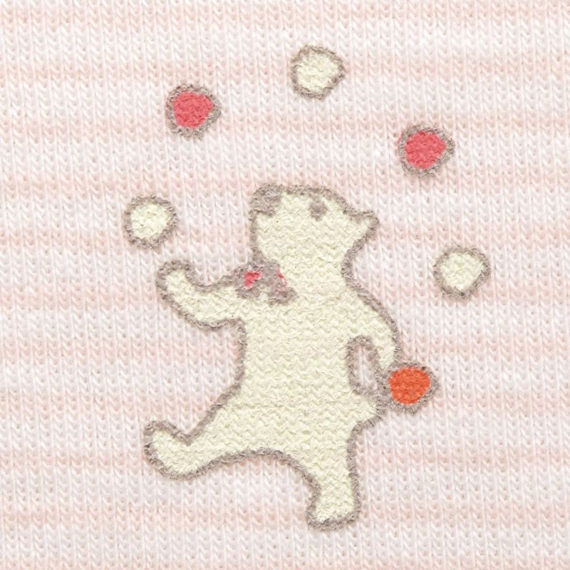 【柄】ユニセックスカラーで、こだわりの先染め極細ボーダーが特徴です。胸元にはお手玉クマさんのワンポイントモチーフが印象的な一枚です。