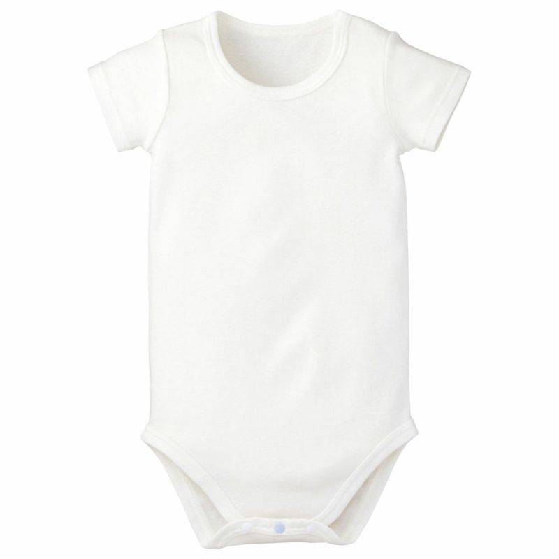 肌ざわりがやさしいフライス素材の無地ボディTシャツ。( かけ違い防止ボタン付き、70サイズは左肩開き )