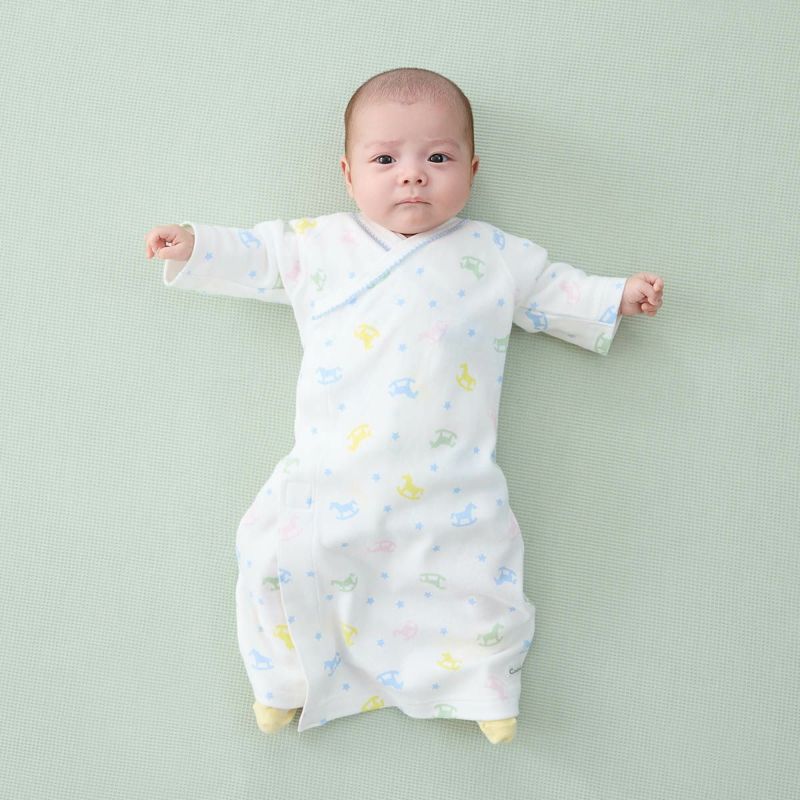 【仕様】ねんねの赤ちゃんを優しく包むドレス型ウェア。赤ちゃんのM字型に開いたあんよに合わせたAライン設計なので、オムツ替えは裾をめくるだけ。ワンタッチテープ仕様でお着替えもカンタン。ワンタッチ短肌着を入れて重ねてお着替えすれば、さらにカンタン!忙しい毎日でも赤ちゃんとの時間が長く取れるようにおむつ替えが時間短縮で赤ちゃんもママも笑顔に。