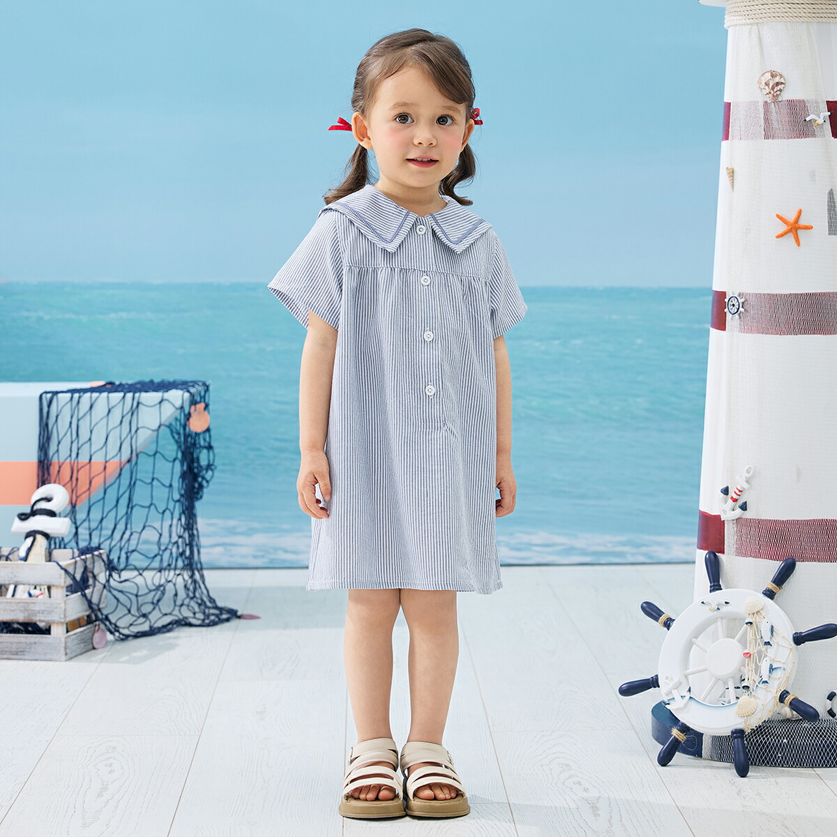 【柄】マリンテイストで夏らしいさわやかな色合いを、上品なワンピースに落とし込みました。