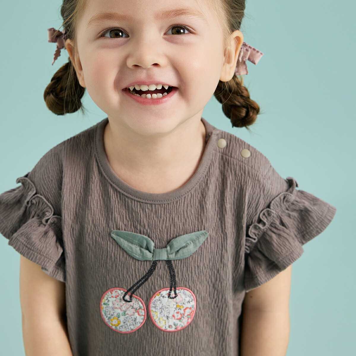半袖楊柳フリル袖トップス(さくらんぼ)