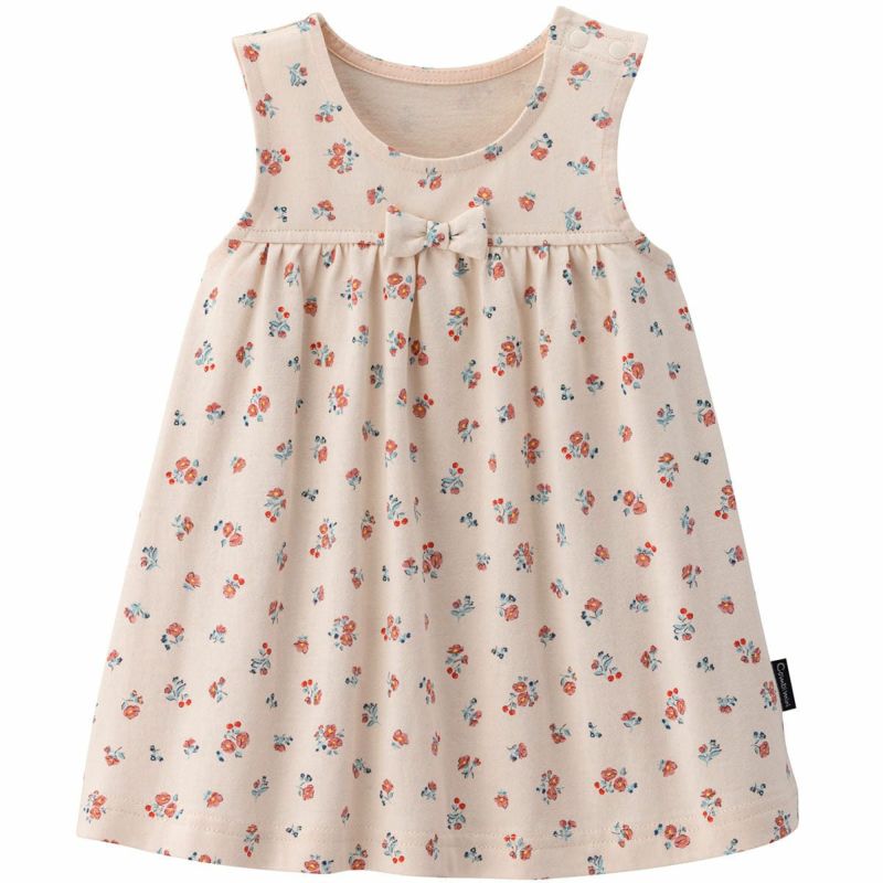可憐なガーリーテイストを演出できる、レトロなプチフラワープリントのジャンパースカート。肌触りのよいベーシックな綿100%天竺素材なので、動きやすく着心地もGOOD。Tシャツやブラウス、レギンスなどと組み合わせて、いろいろな着こなしが出来ます。同柄キッズアイテム(品番:536257、536351、536458)とのリンクコーデを楽しむのもおすすめです。