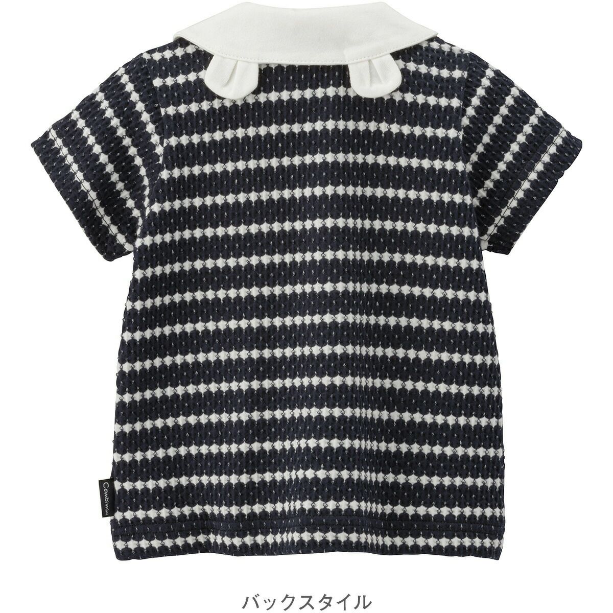 半袖 くま耳襟ブラウス(ドットジャカード)