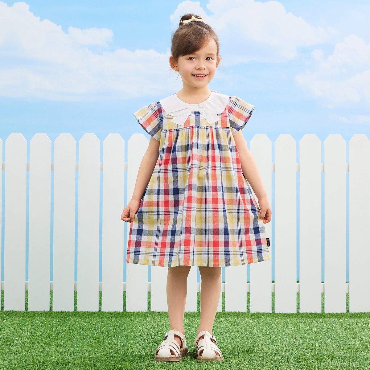 【素材】コンビミニのオリジナル先染めマドラスチェックは、さらりとした綿100%素材で夏の暑い時期の着用も可能です。