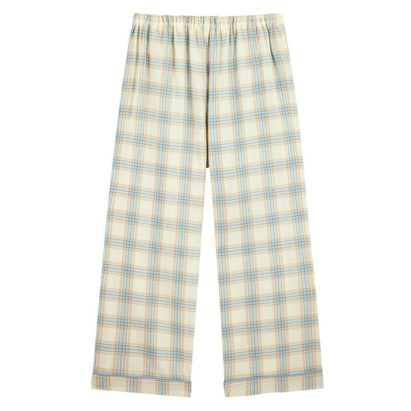 【柄】キッズとお揃いが楽しめるパステルチェック柄は、春らしくやさしい色合いがポイント。ピンクとサックスカラーの2色展開で同素材同柄の長袖もご用意してます。(長袖パジャマ656253/半袖パジャマ657251/長袖ママパジャマ656255)