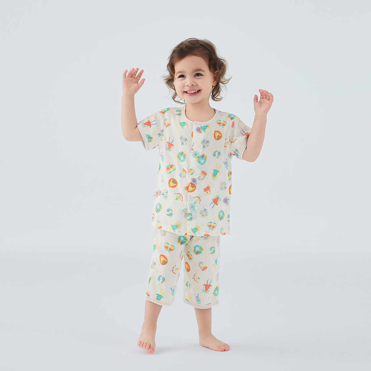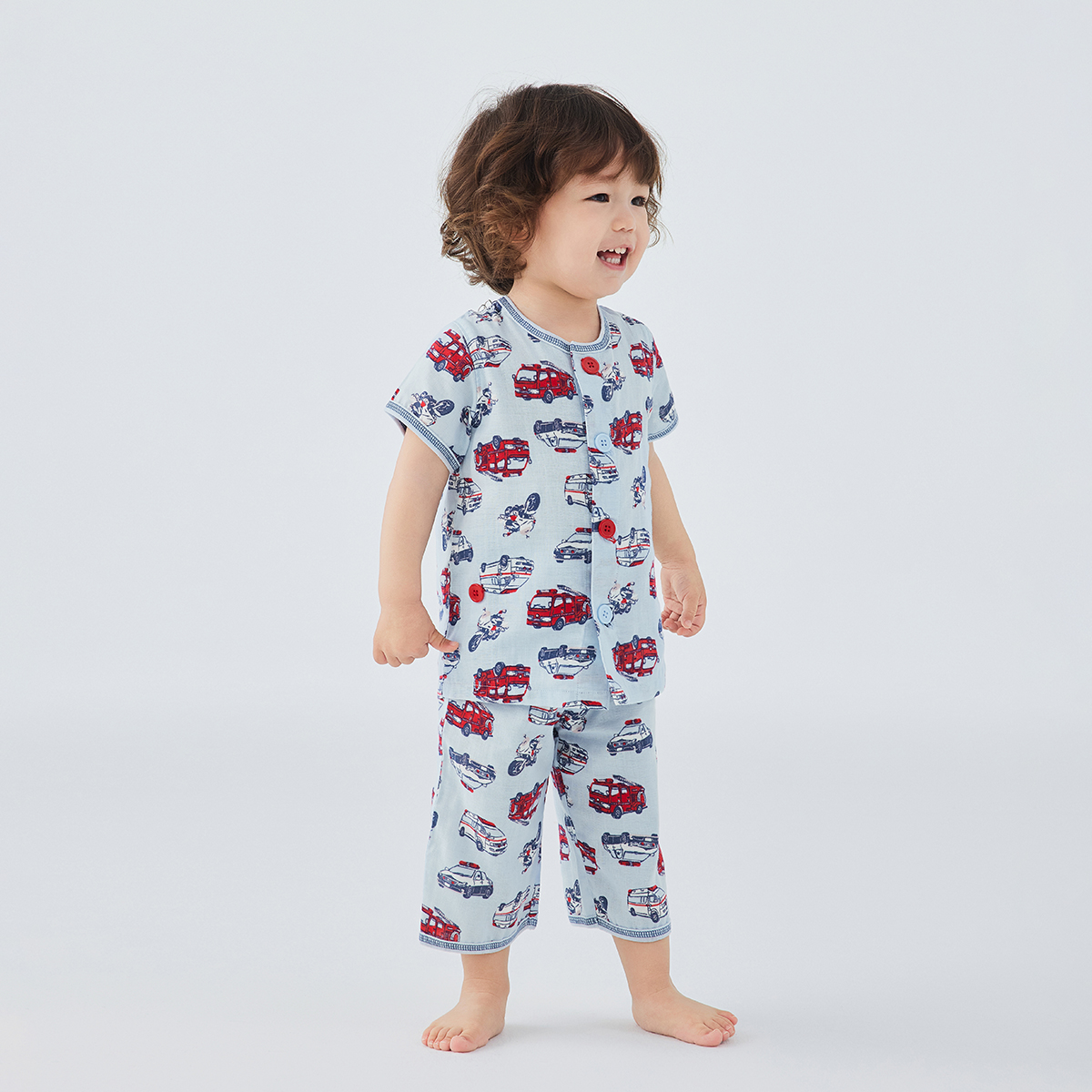 半袖前開きガーゼパジャマ(くじら・働く車・海中探査・スイーツ・星座)