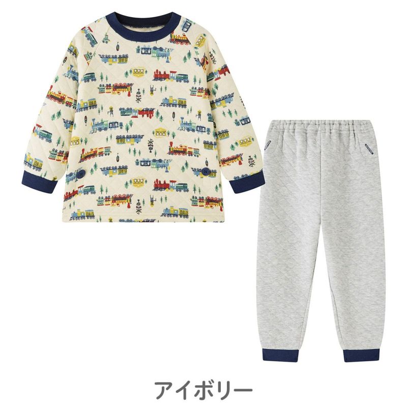 おなか安心ボタン付きあったかキルト長袖パジャマ(はたらく車・汽車)