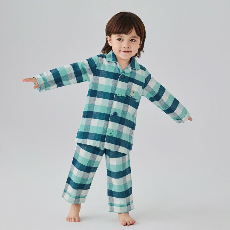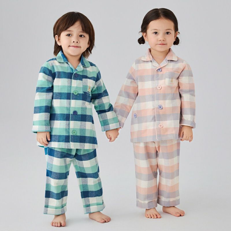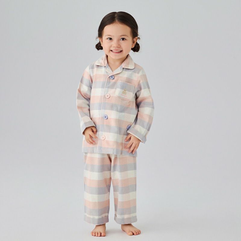 おなか安心ボタン付きやわらかネル起毛長袖前開きパジャマ(先染めモザイクチェック)