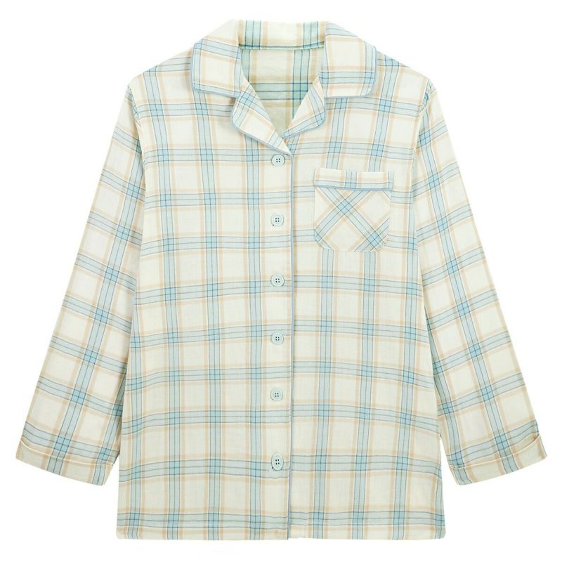 長袖前開きガーゼママパジャマ(先染めパステルチェック)