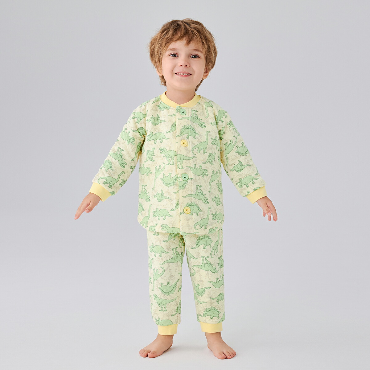 のびのび腹巻付きあったかキルト長袖前開きパジャマ(恐竜)