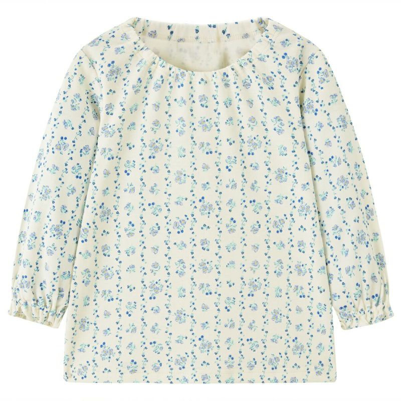 のびのび腹巻付きスムース長袖パジャマ(ブルーフラワー)