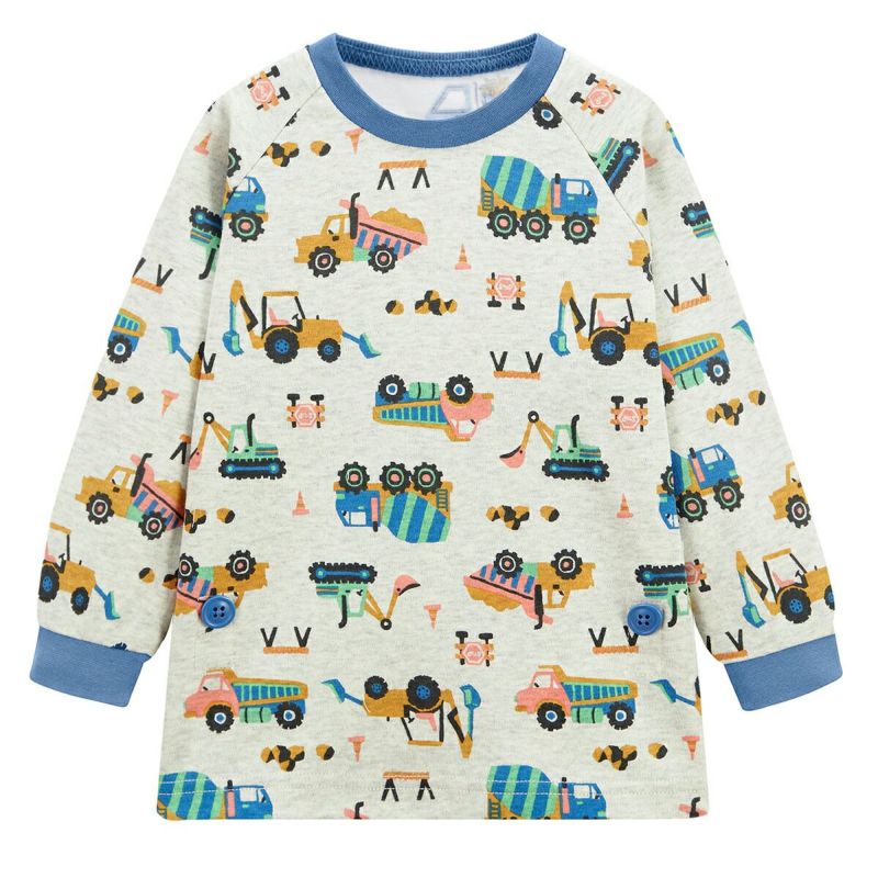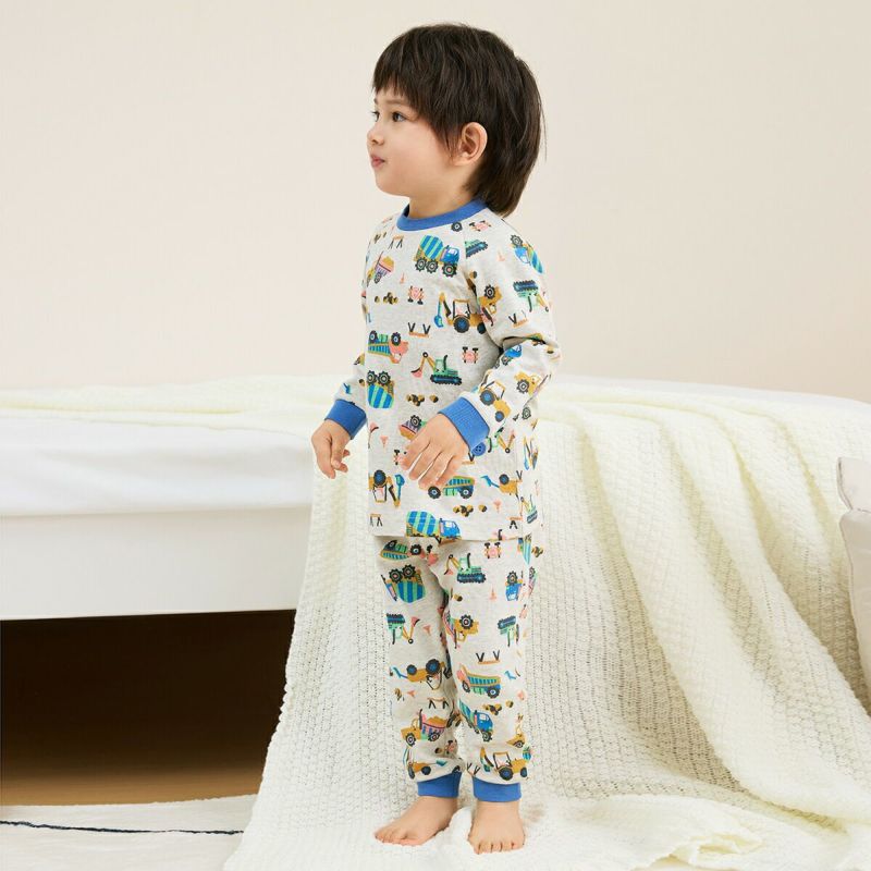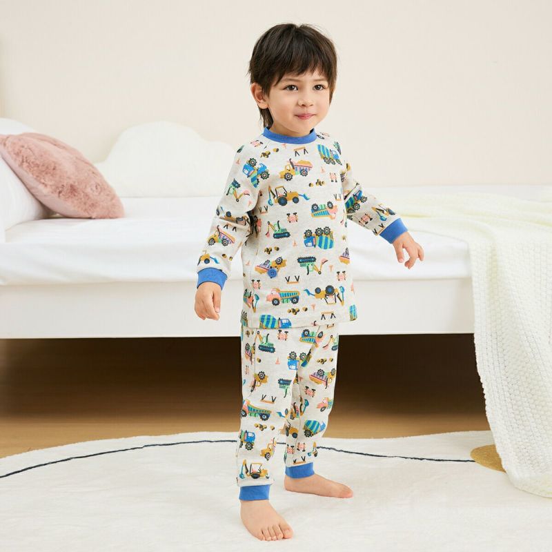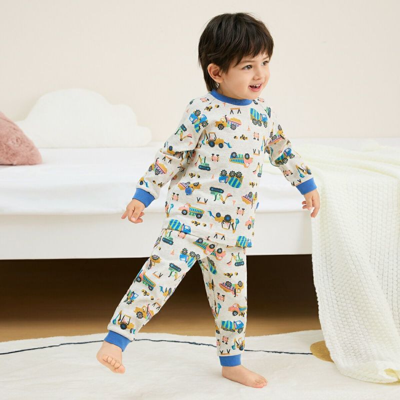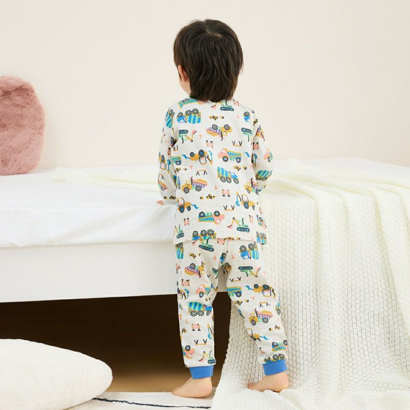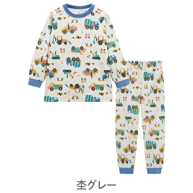 おなか安心ボタン付き毛玉ができにくいスムース長袖パジャマ(働く車・お花畑)