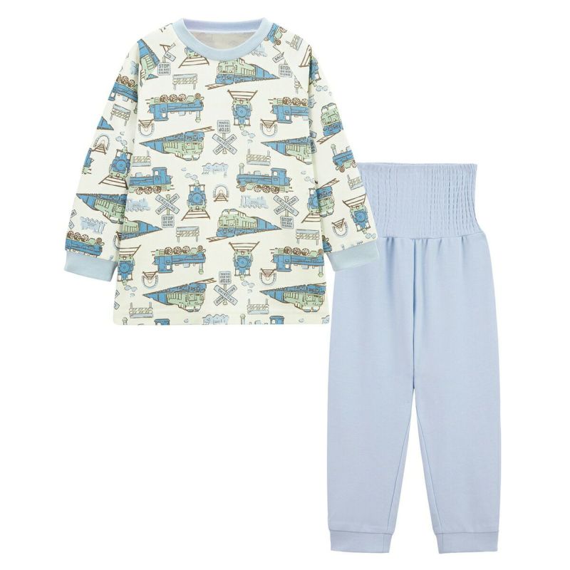 のびのび腹巻付き毛玉ができにくいスムース長袖パジャマ(汽車)