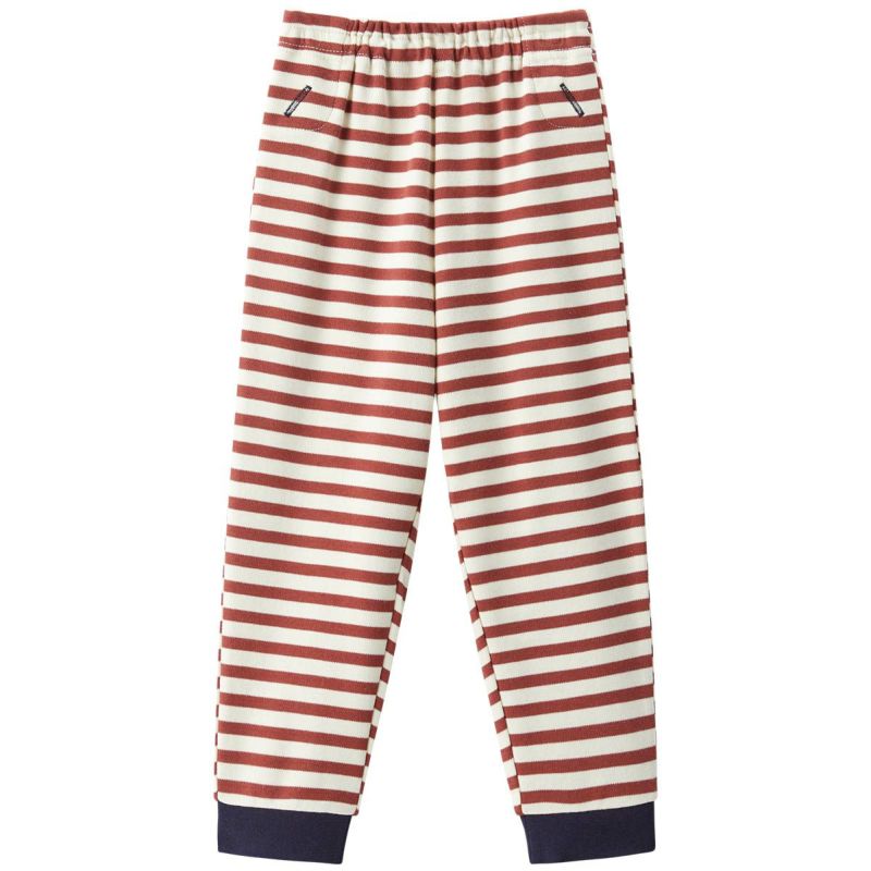 【柄】秋冬にピッタリな落ち着いた雰囲気の先染めボーダーをトラッド調にまとめました。袖や足口の濃色リブも全体を引き締めるポイントになっています。左胸にはくまのワンポイントモチーフを施し、男女ともにおススメできる一枚となっています。