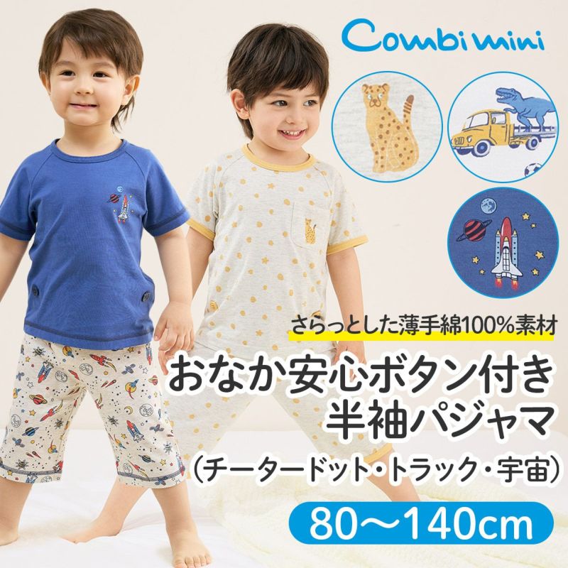 おなか安心ボタン付き半袖パジャマ(チータードット・トラック・宇宙)