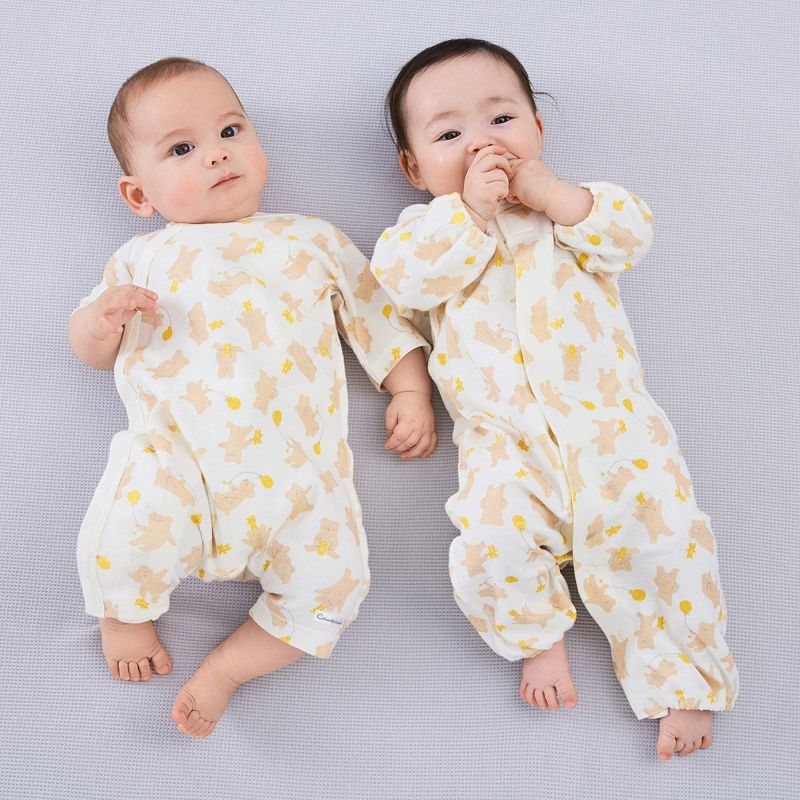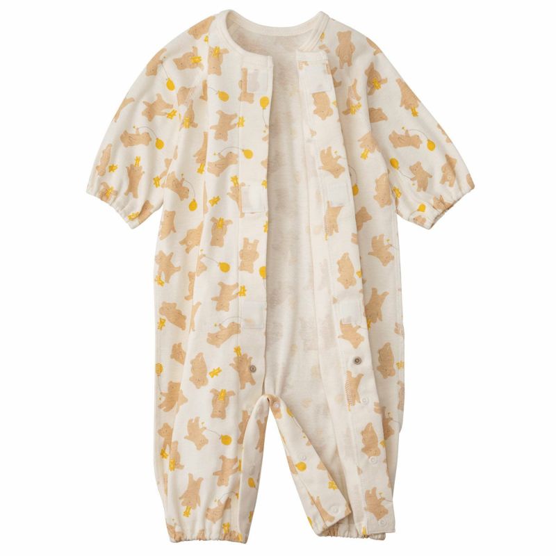 【柄】ゆるっと過ごすくまの総柄がほっこり可愛いツーウェイオールは男女ともにおすすめです。ベビーギフトにもおすすめです。