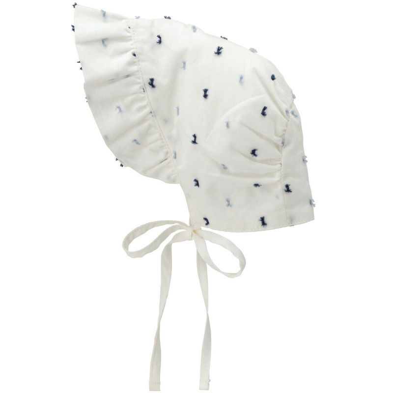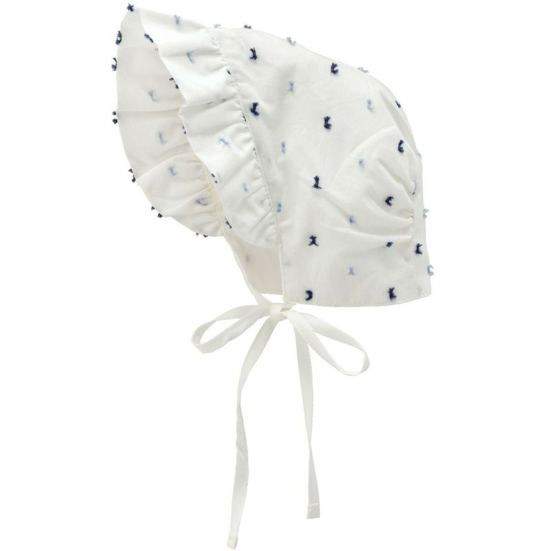 上質なオリジナルの先染めカットドビー生地を生かした、新生児用セレモニーキャップです。立体的な水色と紺色のドビードットがさわやかで、男の子にも女の子にもおすすめです。同生地を使用したラップクラッチ(品番336250)と一緒に合わせると、よりフォーマルな装いに。カットドビー生地を使ったアイテムはラップクラッチの他に、ベビー&キッズアイテム(品番436460、536155)もあるのでリンクコーデもOK。