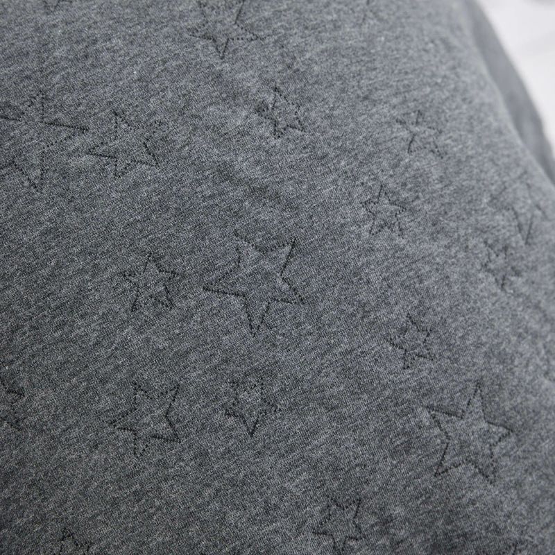 【柄】生地同系色で目立ち過ぎない星柄がコーディネートもしやすくオシャレで特徴的なあったか素材。左袖にはネームを付けて着用時のポイントに。