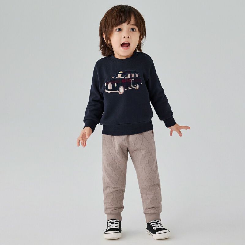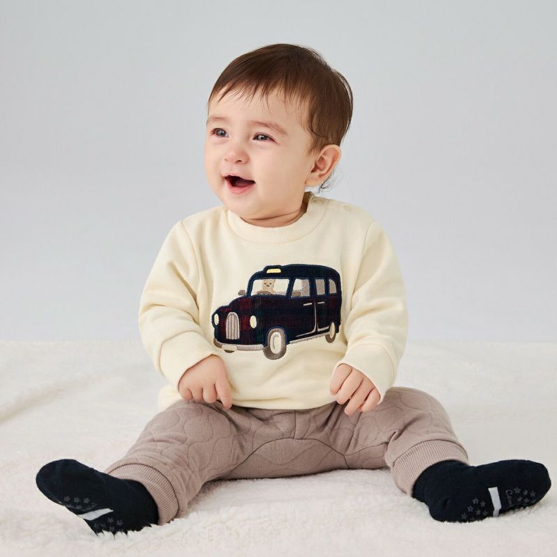 【素材】コンビミニのトレーナーといえば綿100%のベーシック裏毛生地。やわらかい風合いと程よい厚みで秋冬から春まで着用可能な生地です。