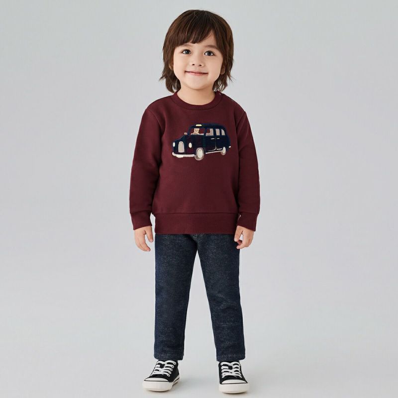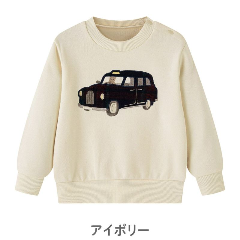 【仕様】通園着からおでかけ着まで幅広く活躍することを願ってシンプルなトレーナーの形を採用。コーディネートし易いアイボリー、ベーシックなネイビー、季節感のあるボルドーの3色展開で幅広い着用シーンに最適。