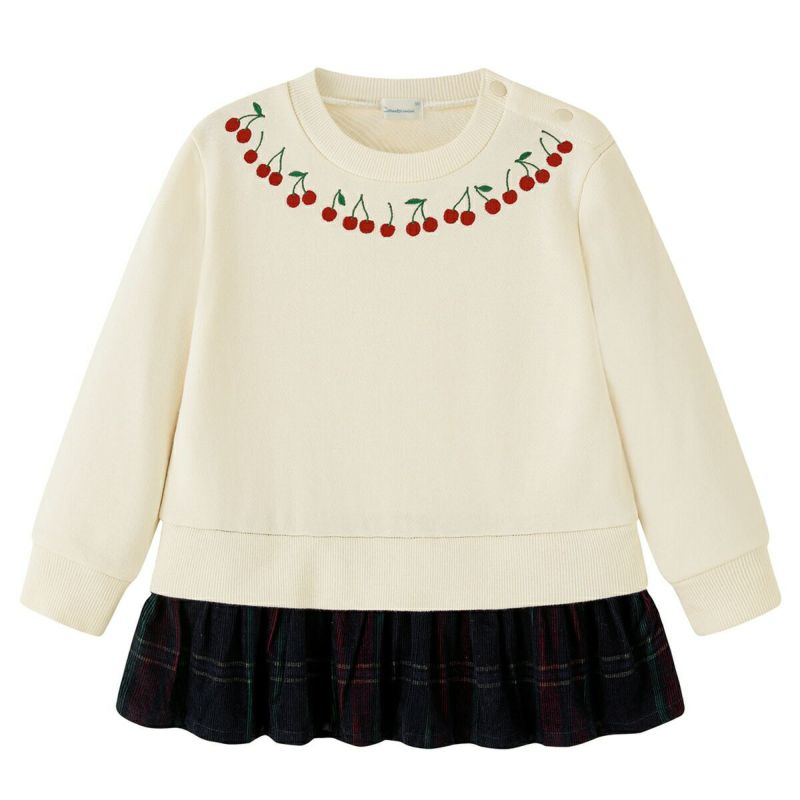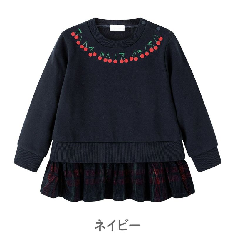 【柄】首元の襟まわりにはさくらんぼの刺繍で上品な印象です。コーディネートしやすいアイボリーとベーシックなネイビーカラーの2色展開