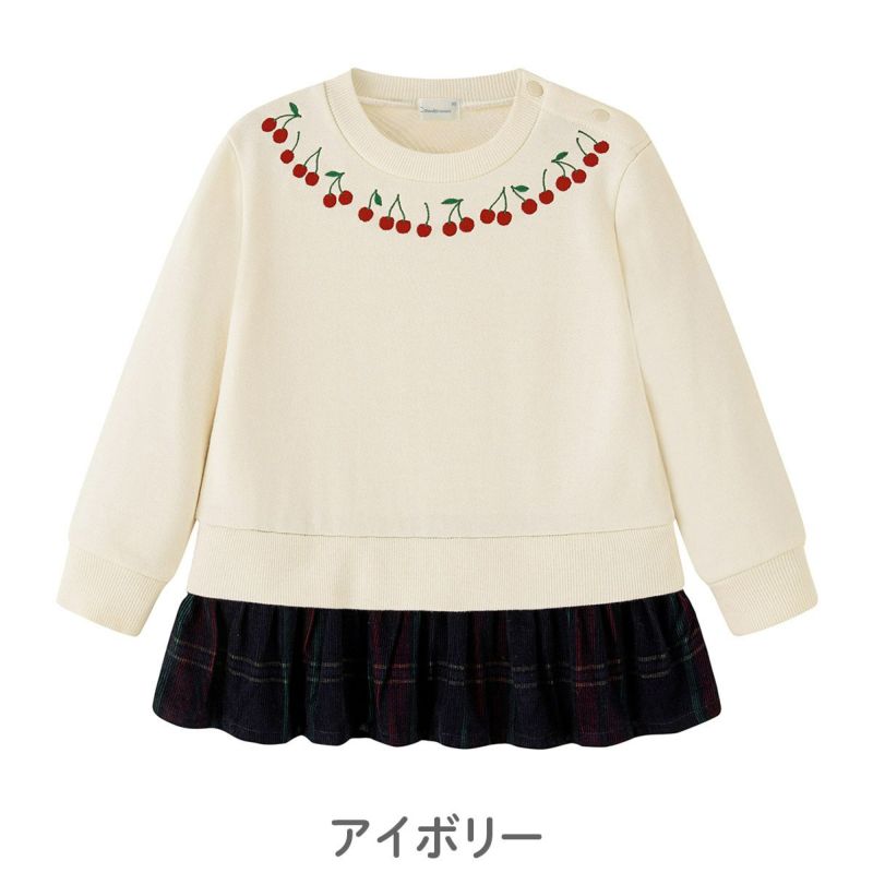 裏毛長袖ペプラムトップス(チェリー)