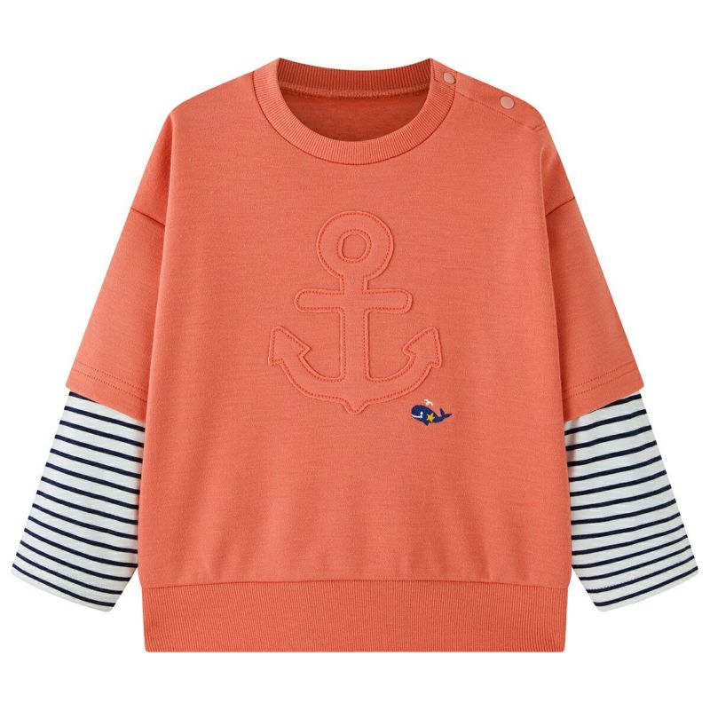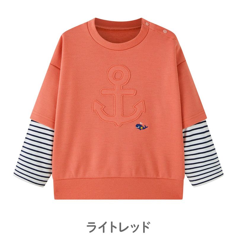 人混みでも子供を見つけやすい目立つ色が欲しくて、ライトレッドを購入。画面だとオレンジ色に見えましたが、実物はアプリコット色です。レイヤード風でメリハリついていいです。女の子でも似合うと思います。 少子化で子供服の販売は厳しいと思いますが、コンビミニらしさ(上品さ、くすみ色以外のカラバリ、着心地)も残していって欲しいなぁと思っています。