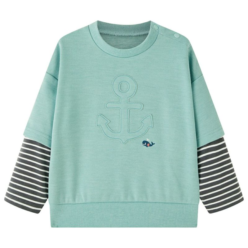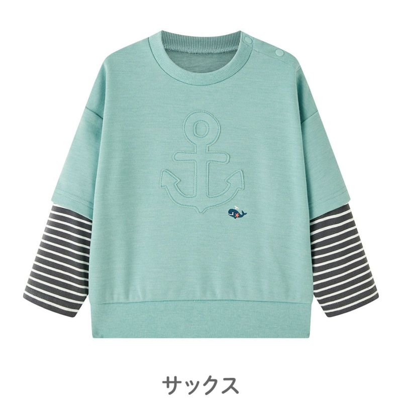 【仕様】マリンらしくボーダーの生地を使った袖部分はレイヤード風の切り替えで1枚でもおしゃれな雰囲気に。
