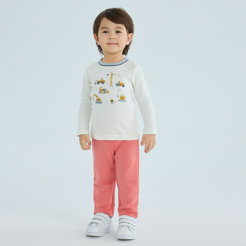 【素材】やわらかな綿100%フライス素材は生地の伸縮があるので着心地がよく、ふっくらとした風合いが特徴です。洗濯もしやすいので毎日のように使えて、通園、通学着としても活躍すること間違いなしの1着です。