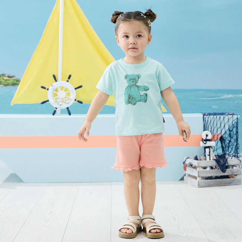 【素材】コンビミニの夏定番素材さらクールは、接触冷感性と吸水速乾性に優れた機能糸を使った薄手の天竺素材。通気性が高く、汗をかいてもさらっとした肌触りで着心地も爽やかです。