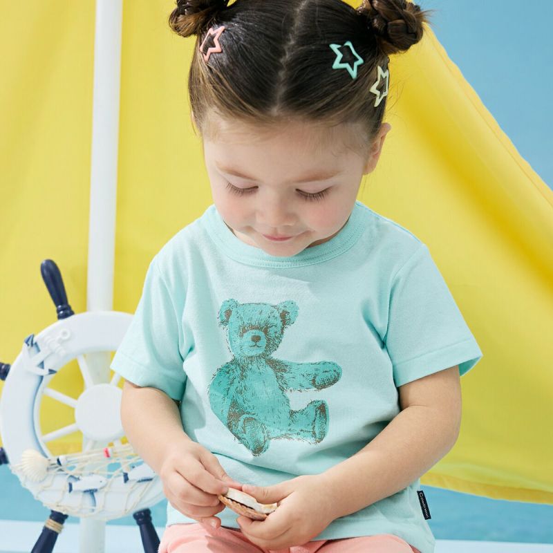 【柄】男女ともにおススメの、夏らしい色合いの2色展開で、前身頃の大きいクマのぬいぐるみ柄が存在感があり、様々なシーンで大活躍すること間違いなし!