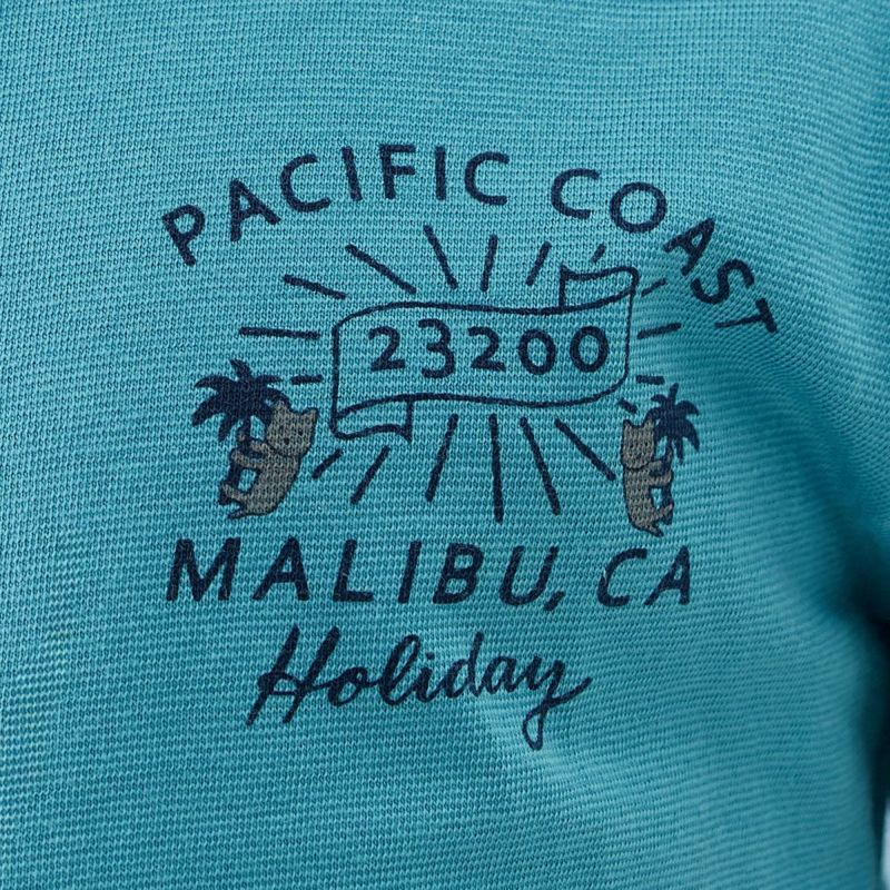 【柄】男女ともにおススメの、夏らしい爽やかな色合いの3色展開で、ビーチリゾートを意識した左胸のワンポイントプリントがオシャレ感を引き立たせます。