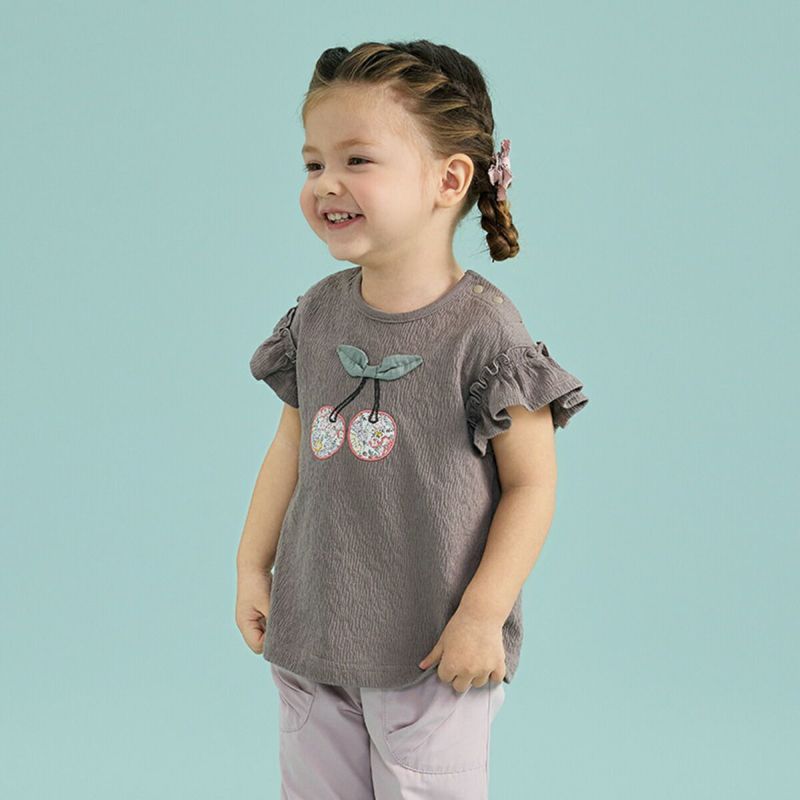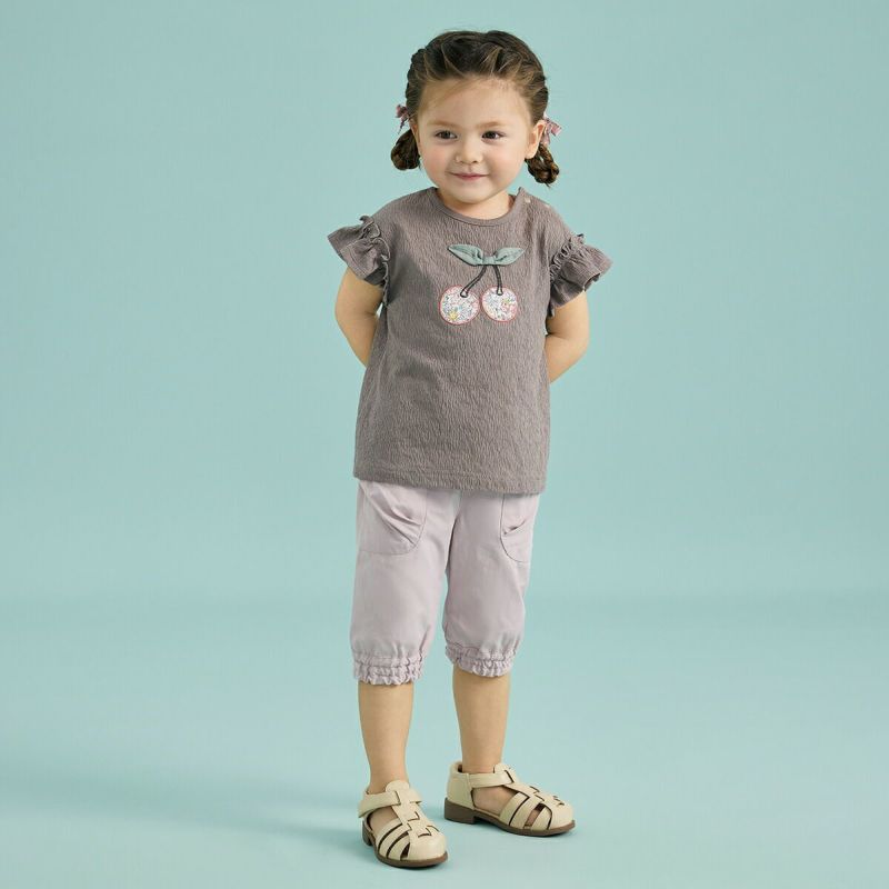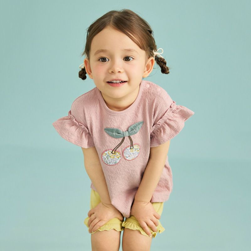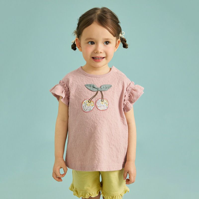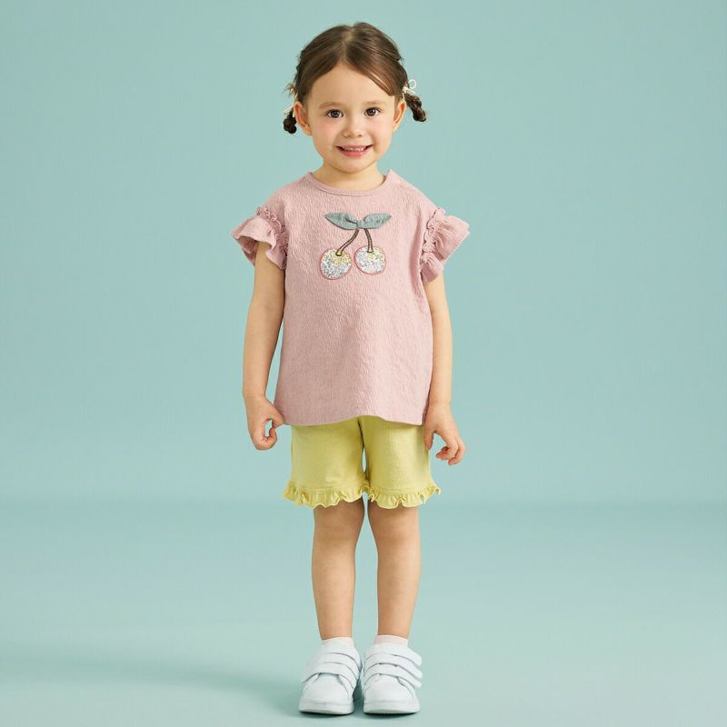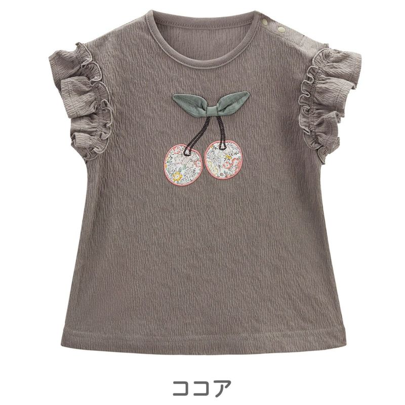 半袖楊柳フリル袖トップス(さくらんぼ)